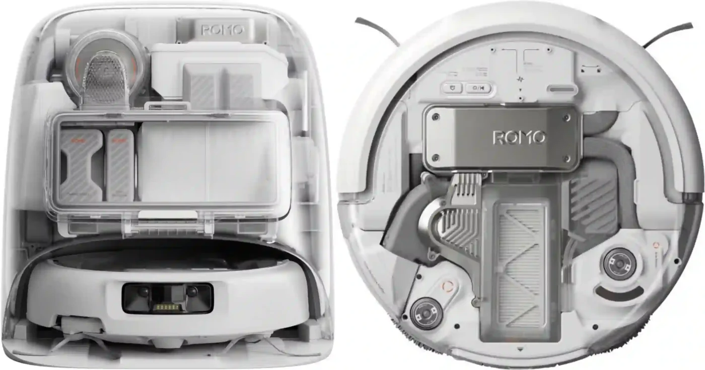 Forskellen ligger i detaljerne. ROMO A har ikke UV-sterilisering eller gulvduft-dispenseren, som findes i ROMO P. Til gengæld får du en robot, der passer elegant ind i de fleste moderne hjem med sit gennemsigtige robotdesign og den hvide base. Det er et yderst fornuftigt valg for familier, der prioriterer en kraftfuld og næsten vedligeholdelsesfri rengøringshjælp.