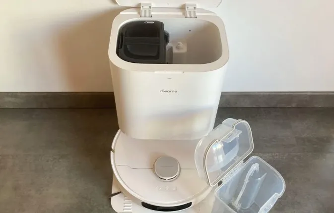 Når hele rengøringscyklussen er afsluttet, sørger basestationen for at vaske mopperne en sidste gang og tørre dem grundigt med luft for at undgå lugtgener. Denne proces er fuldstændig automatiseret og kræver kun, at du en gang imellem fylder rent vand på og tømmer beholderen med det beskidte vand efter brug i hjemmet.