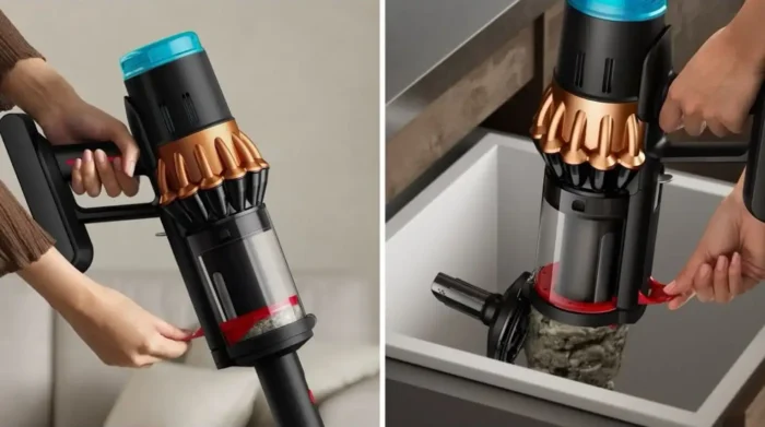Den hygiejniske tømning er et andet stort plus. Støvbeholderen er designet til at tømmes rent og nemt, uden at du behøver at røre ved snavset eller kæmpe med sammenfiltret hår, som ofte er et problem med traditionelle støvsugere. Dette bidrager til en mere behagelig og mindre besværlig rengøringsoplevelse, og understreger Dysons fokus på brugervenlighed og hygiejne i alle deres produkter.
