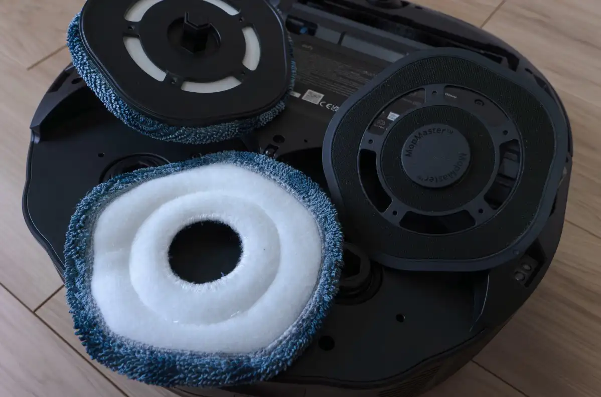 Mopperne vedligeholdes automatisk af stationen. Efter hver rengøring vaskes de med rent vand og tørres med 45°C varm luft. Det anbefales dog at tjekke dem visuelt af og til og vaske dem i maskine, hvis de bliver ekstremt beskidte over lang tid.