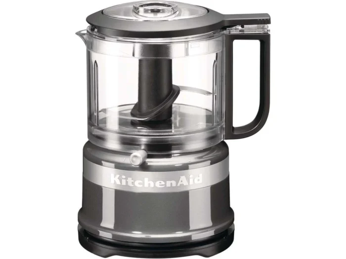 I mange en KitchenAid foodprocessor test roses denne model for sin enkelhed og effektivitet. Den betjenes nemt med én hånd via knapperne på toppen. Den har to hastigheder: en til hakning og en til purering. Den unikke dryppebeholder i låget gør det nemt at tilsætte olie langsomt, mens maskinen kører, hvilket er perfekt til mayonnaise eller pesto.