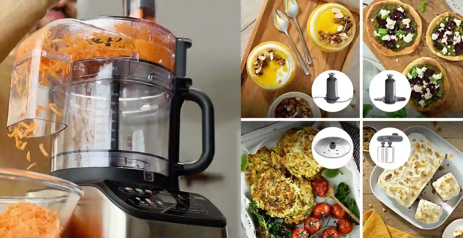 Med mere end 50 funktioner tilgængelige, fra rivning og snitning til maling af kaffebønner og hakning af urter, er den utrolig alsidig. MultiLevel6-kniven i minihakkeren og blenderen sørger for meget jævne og præcise resultater. Maskinen er nem at samle takket være tydelige markeringer, så du kommer hurtigt i gang med madlavningen.