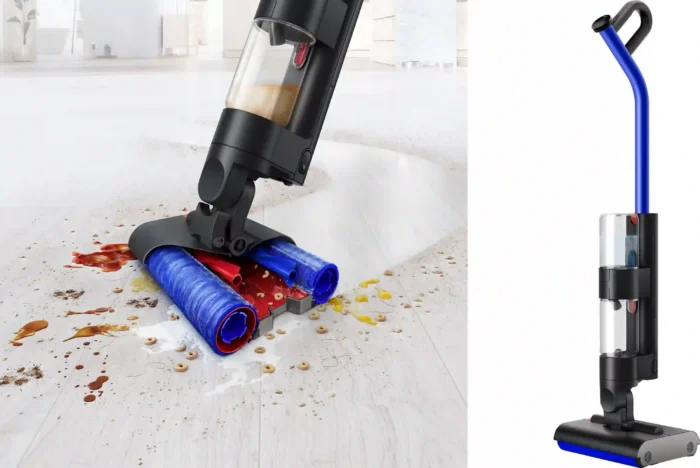 Dyson Wash G1 skiller sig ud på markedet ved udelukkende at fokusere på vask af hårde gulve, uden traditionel vakuumsugning. I stedet bruger den to modroterende mikrofiberruller, som effektivt fjerner både vådt og tørt spild, samtidig med at den adskiller affaldet hygiejnisk i separate beholdere. Dette system sikrer, at snavset vand aldrig føres tilbage på gulvet.