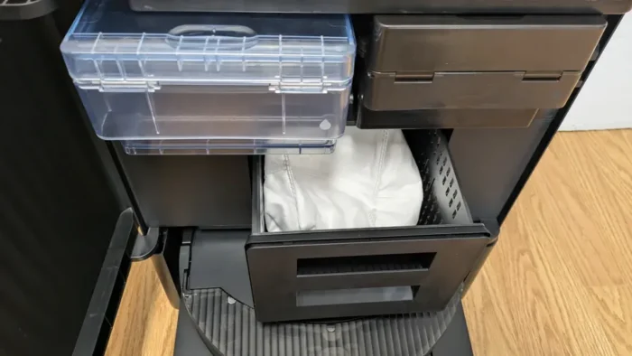 Støjniveauet er også værd at nævne. Mens den arbejder effektivt, er lyden ikke generende i ‘Quiet Mode’. Når den tømmer sig selv i docken, er der en kortvarig lyd, men selve rengøringsprocessen er designet til at være så diskret som muligt.