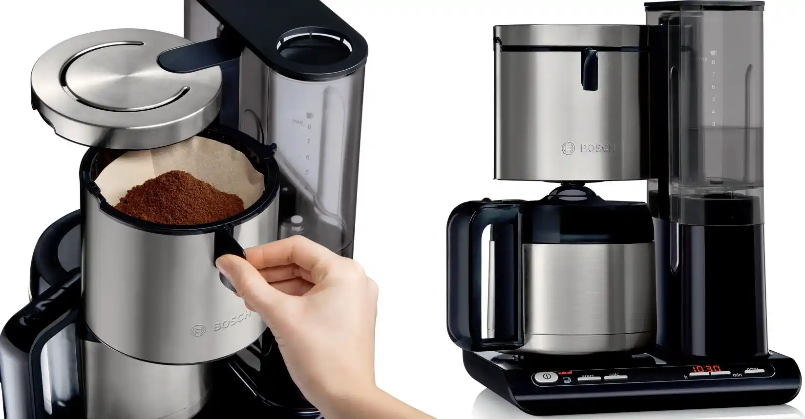 Denne model fra Bosch er en fremragende løsning for dem, der ønsker at holde kaffen varm længe uden at gå på kompromis med smagen. Med sin indbyggede termokande i rustfrit stål sikrer den, at din kaffe holder temperaturen, selvom du ikke drikker den med det samme. Det stilrene sorte design passer ind i de fleste moderne køkkener.