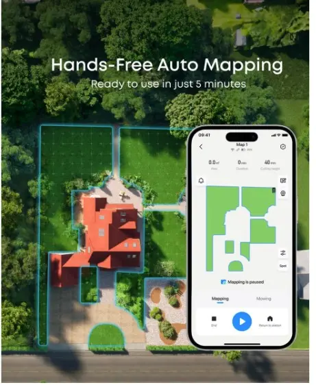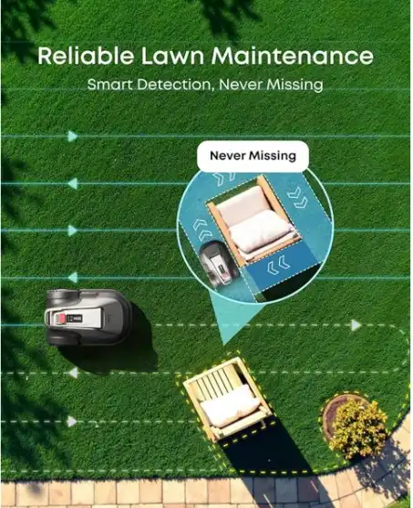 Et scenarie med forhindringer som træer viste, at dens smarte navigation undgår kollisioner og klipper kanter præcist. Efter brug returnerer den til stationen, og appen giver oversigt over dækning. For flere valg, udforsk Anker robotplæneklippere kategorien.