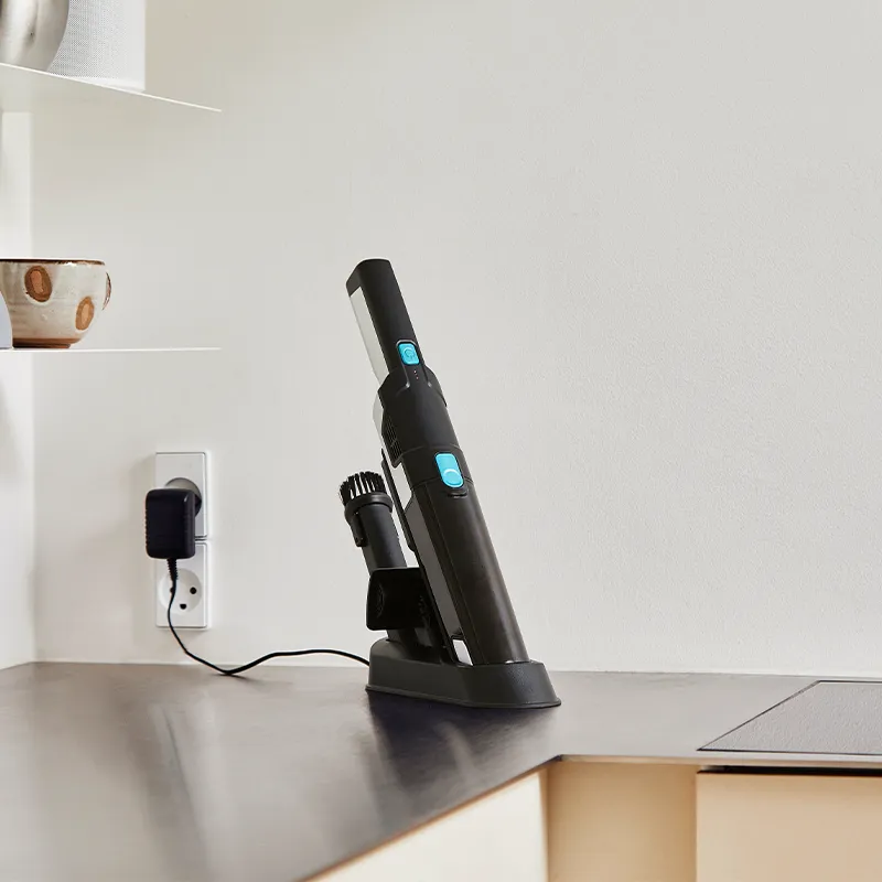 Haws ledningsfri håndstøvsuger 90 watt integreres nemt i din rutine. Lad den op i stationen og brug den til hurtig oprydning efter mad eller på sofaen. Den håndterer krummer og hår med lethed. I tests fjernede den snavs uden problemer.
