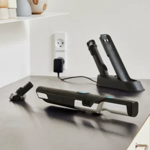 Haws ledningsfri håndstøvsuger 90 watt skiller sig ud med sit kompakte design og integrerede tilbehør, der opbevares i ladestationen. Sammenlignet med større støvsugere tilbyder den frihed uden ledninger og 90 W effekt til præcise opgaver. Den er ideel til danske køkkener og biler, da den når ind i trange rum.