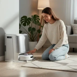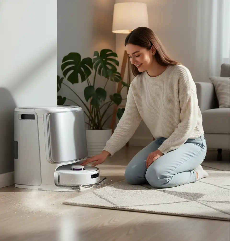 Den selvvedligeholdende base holder alt rent. Dette reducerer allergener i luften. Perfekt til pollenfølsomme i Danmark. Oplev sundere boligforhold.
