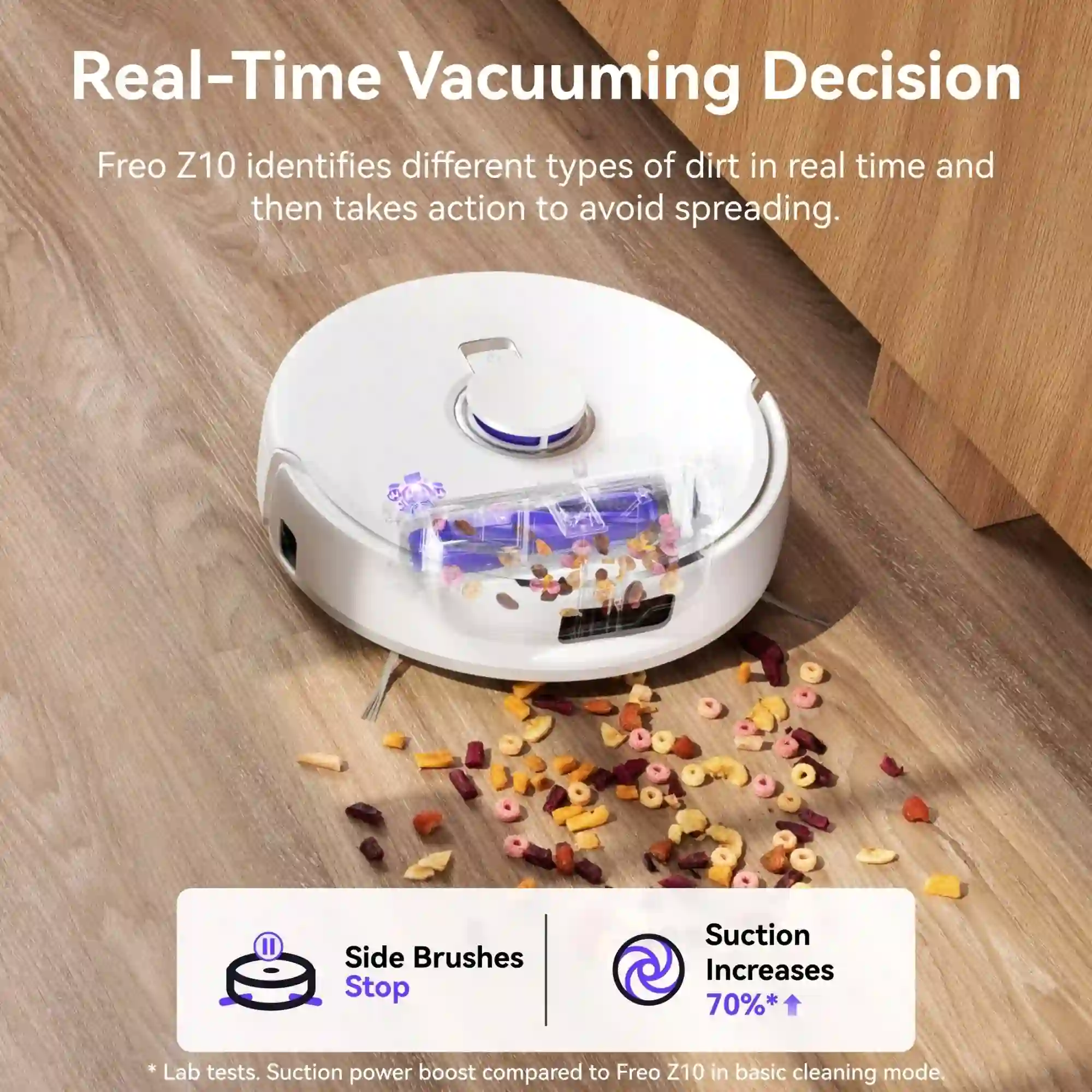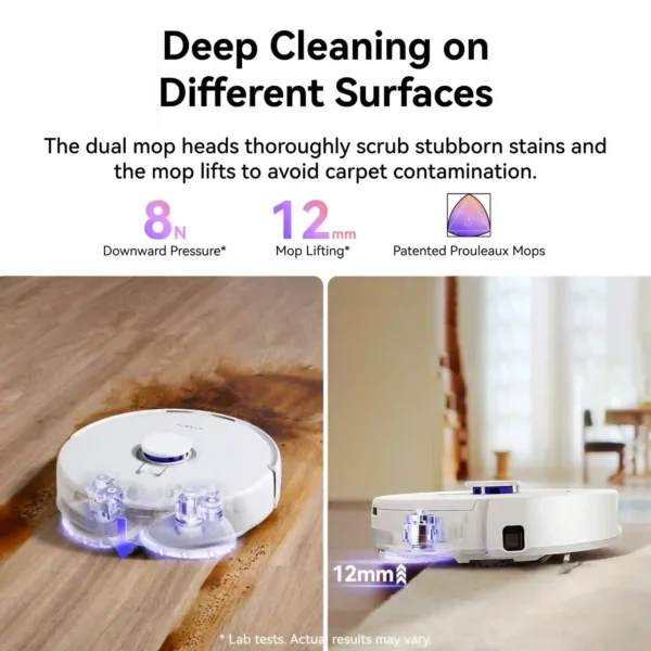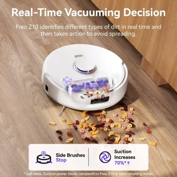 Navigationen kombinerer LiDAR og dobbeltkamera for at genkende over 200 objekter, som sko eller kæledyrsafføring. Den undgår dem præcist ned til 5 mm, hvilket reducerer kollisioner. Desuden løfter hovedbørsten automatisk under mopning for at forhindre forurening. Ifølge data fra tests holder dette systemet hygiejnisk og effektivt over tid.
