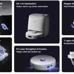 - 🧹 DirtSense-teknologi: Automatisk detektion og ekstra runder på snavsede zoner.