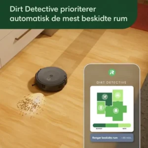 En robotstøvsuger som Roomba Combo 10 Max med AutoWash-dock gør rengøring fuldstændig håndfri. Docken vasker kluden og tømmer snavs i 60 dage, mens SmartScrub sikrer pletfri gulve. Vores test bekræfter dens evne til at tackle snavsede zoner automatisk.