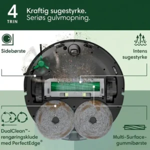 En robotstøvsuger som Roomba Plus 505 Combo med DualClean-moppe giver bedre kantdækning og fjerner pletter med SmartScrub. Den kombinerer støvsugning og mopning for alsidig brug. Vores test viste, at den reducerer rengøringstiden i travle hjem.